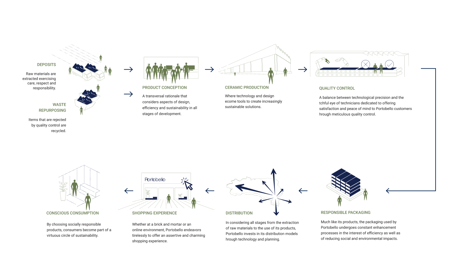 Portobello takes an integrated approach to sustainability, focusing on environmental, social, and economic factors. We have a conscious and regenerative manufacturing process in place. As we grow, we continually emphasize sustainability, striving to implement best practices and inspire a more sustainable future across the entire supply chain.